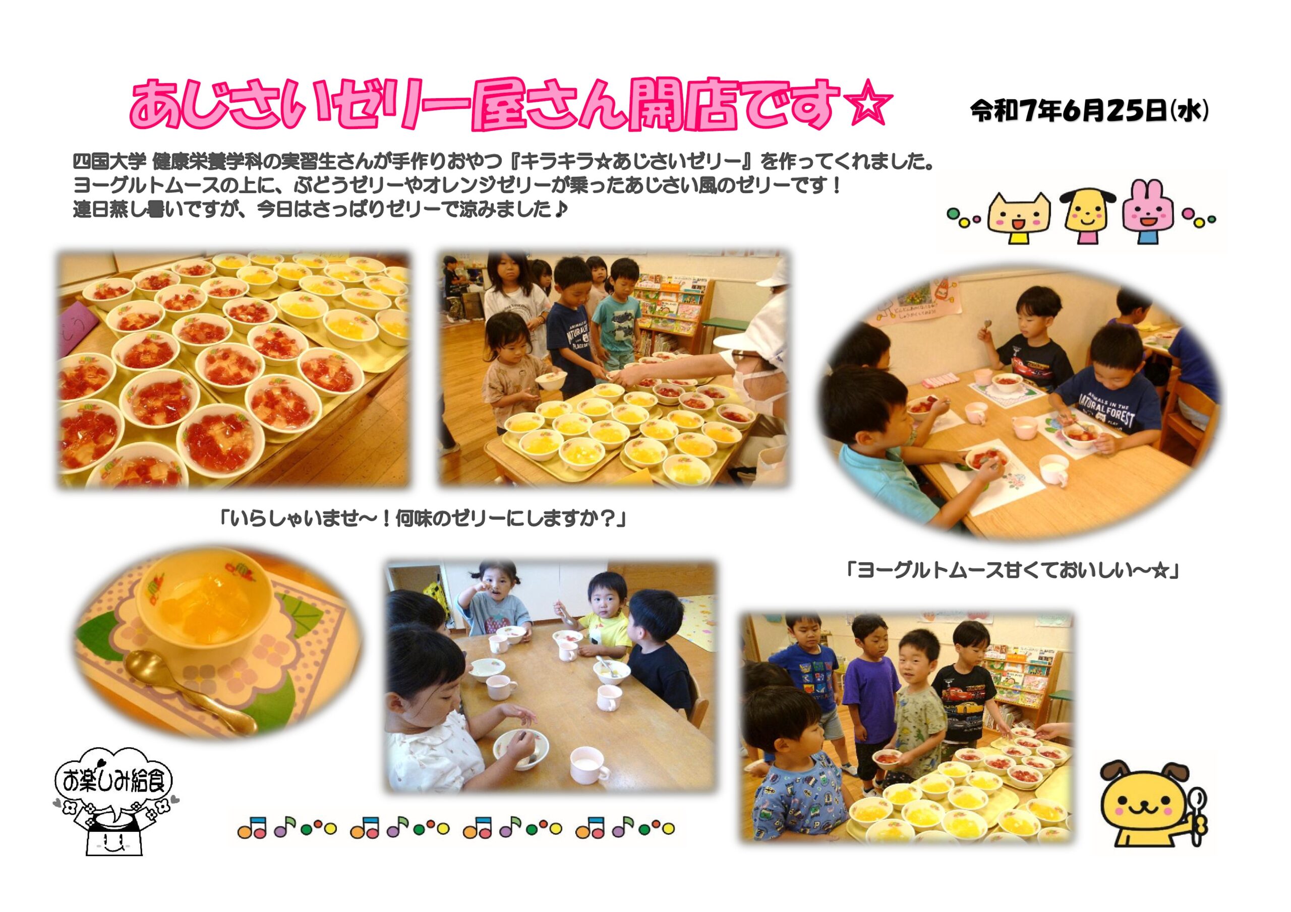 四国大学栄養学科の実習生さんによる手作りゼリー屋さんです。