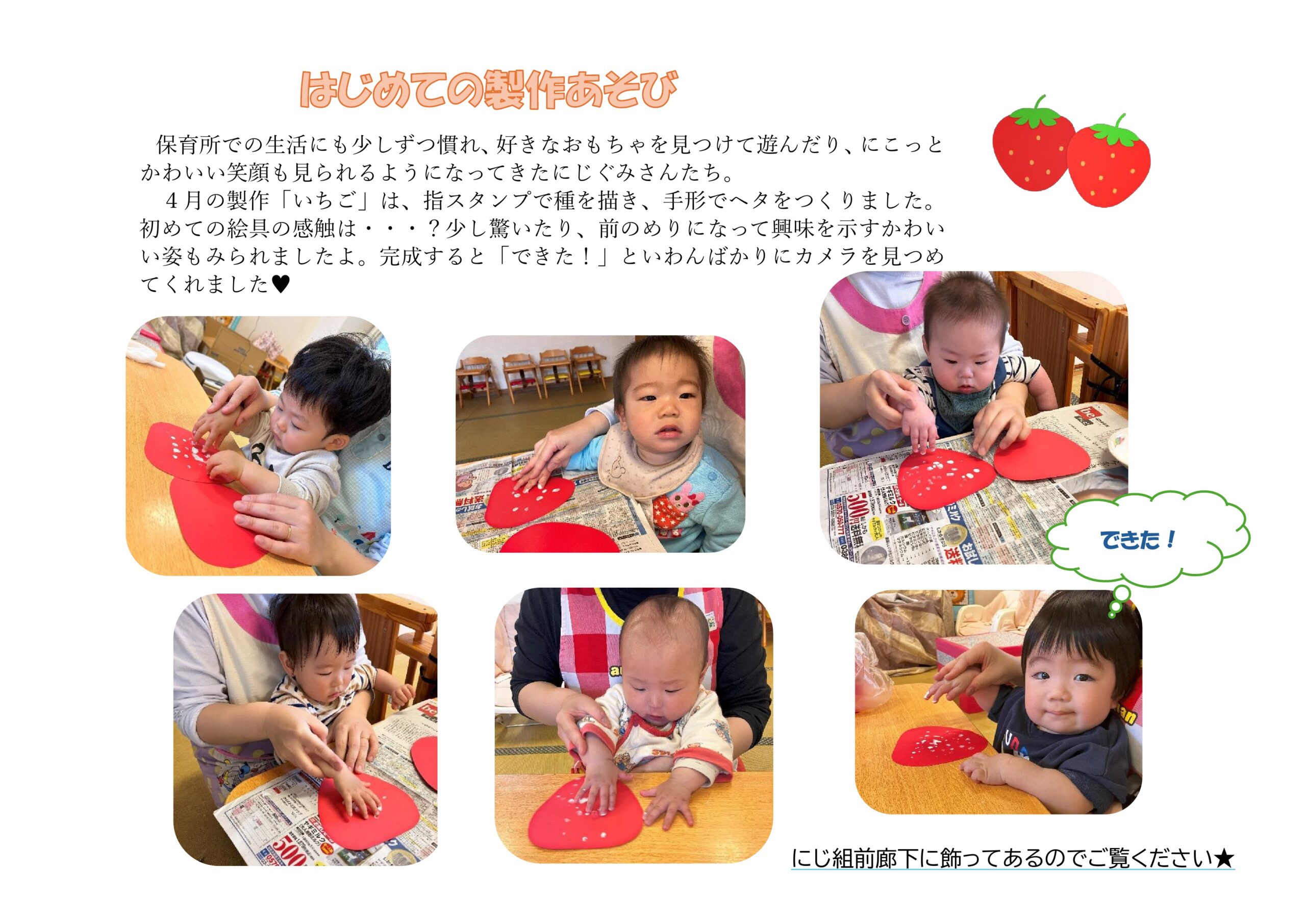 はじめての制作遊び。かわいい作品ができました。