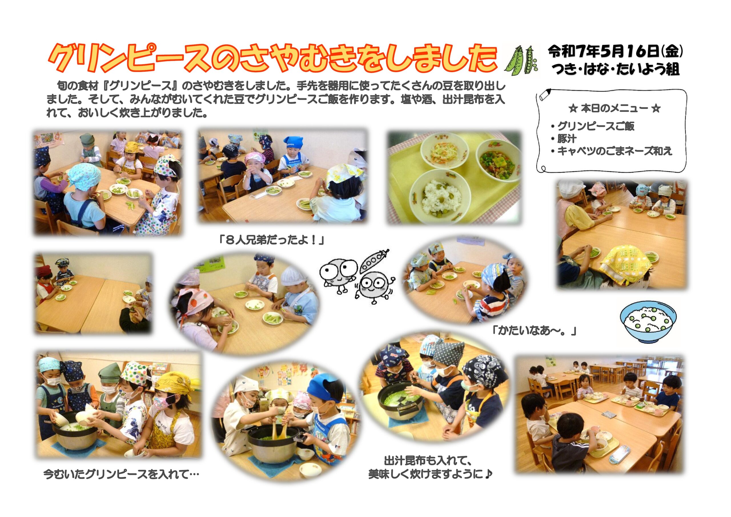 旬の野菜『グリーンピース』をしました。