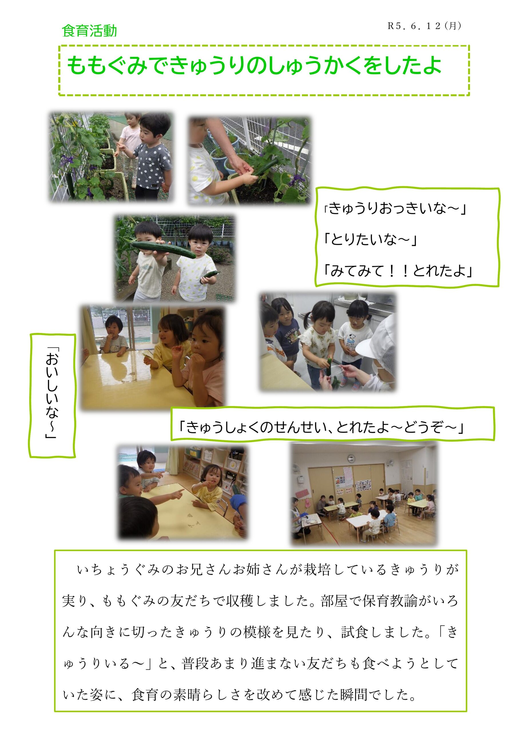0612食育「きゅうりの収穫」